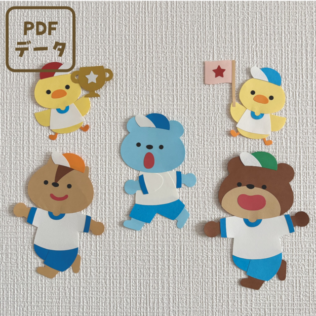 【商品】どうぶつたちの運動会壁面型紙 追加素材 ほいくえのホームページより無料ダウンロードできる、『どうぶつたちの運動会壁面型紙』の追加素材です。 ご購入いただき、無料の型紙素材と合わせて製作していただくと、さらに走っているどうぶつたちなどの壁面が追加されて、よりにぎやかで楽しい壁面になります! 画像6枚目に、無料素材で作った壁面と一緒に飾った一例の写真を載せておりますのでぜひご覧ください♩ おまけで同じ絵柄のぬりえ(画像7枚目)もついてくるので、ぜひ一緒にお楽しみください! 【内容】 ・壁面型紙 4枚 (りす・ねずみ・くま・カップひよこ旗ひよこ) ・ぬりえ (通常ver・太線ver) 【購入形式】 データ販売 ※実物の商品は発送されません ※再配布・販売・第三者への譲渡は禁止です ※家庭や園・学校などの施設、個人の利用に限ります 【注意点】 ・ダウンロードには回数制限(3回)とダウンロード期限がございます。 ・ダウンロードがうまくいかない場合は外部ブラウザへ切り替えてお試しください。 ・その他なにかお困りごとがございましたら、InstagramのDMもしくはほいくえのホームページお問い合わせフォームよりご連絡くださいませ。