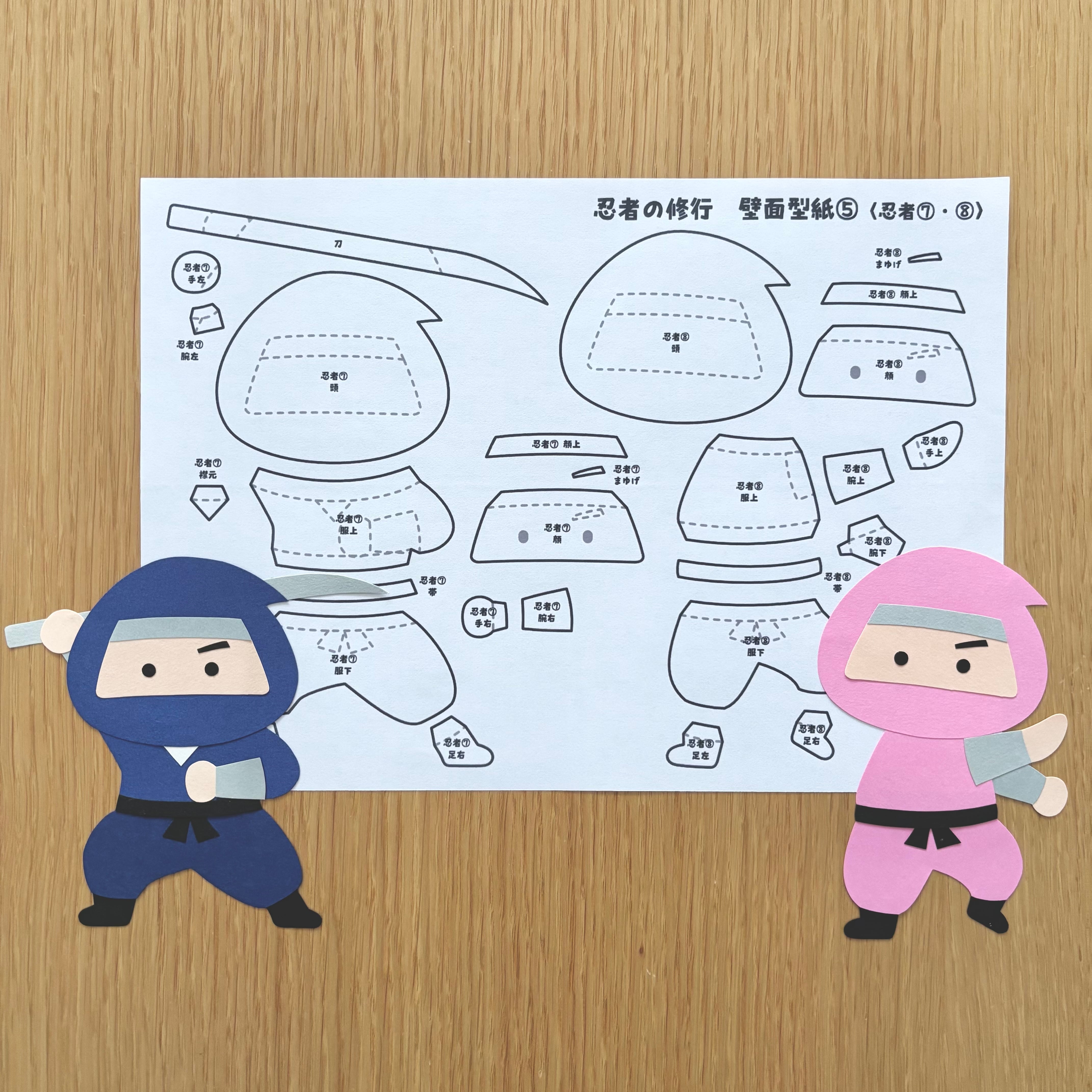 ほいくえのホームページより無料ダウンロードできる、『忍者の修行壁面型紙』の追加素材です。