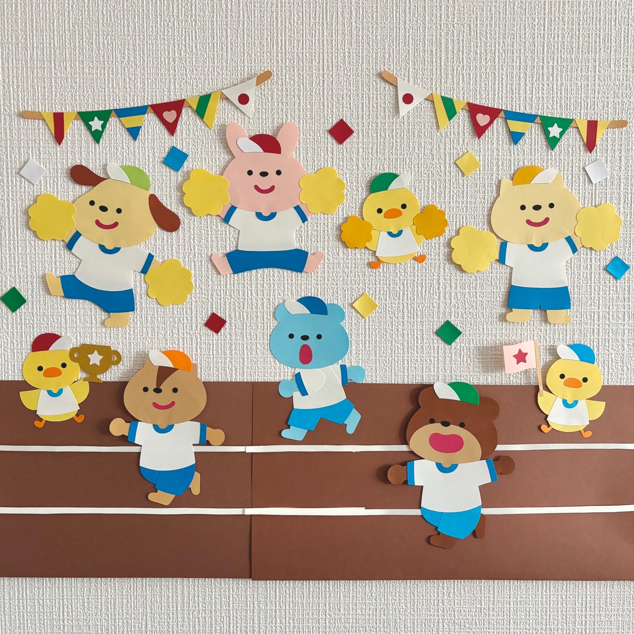ほいくえのホームページより無料ダウンロードできる、『どうぶつたちの運動会壁面型紙』の追加素材です。